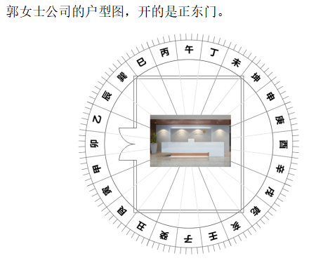 门属水,金锁玉关口诀“卯水属同人、发福小财神,家物他人有、伯道在本身”,正东开门,卯山见水,说明是发财的门,“伯道在本身”这句话,在公司如何解释呢?伯道无儿,说明后继无人,或者说公司发展不会久远,现在很赚钱,将来可能就转型了;震宫不喜水,从性格角度来讲说明郭女士易于冲动,或者多动症;从公司人员角度,说明员工多动少静,适于营销型的走商。